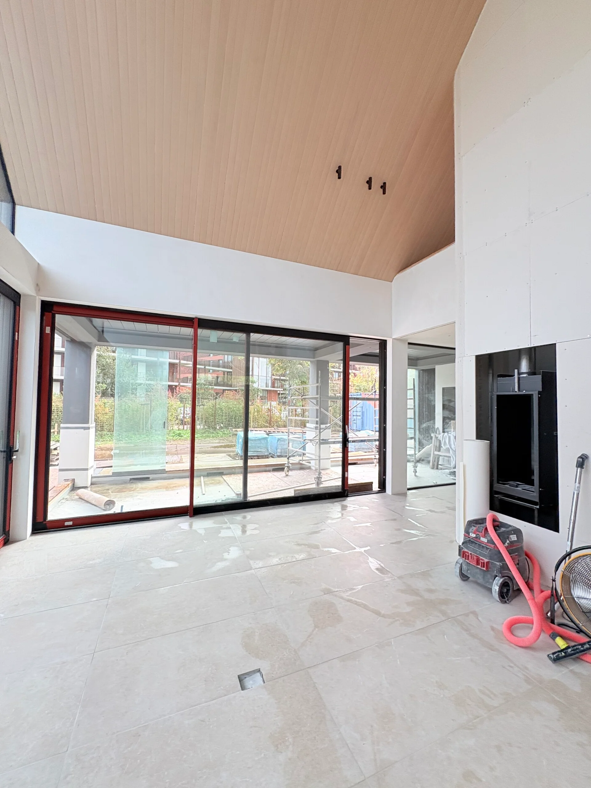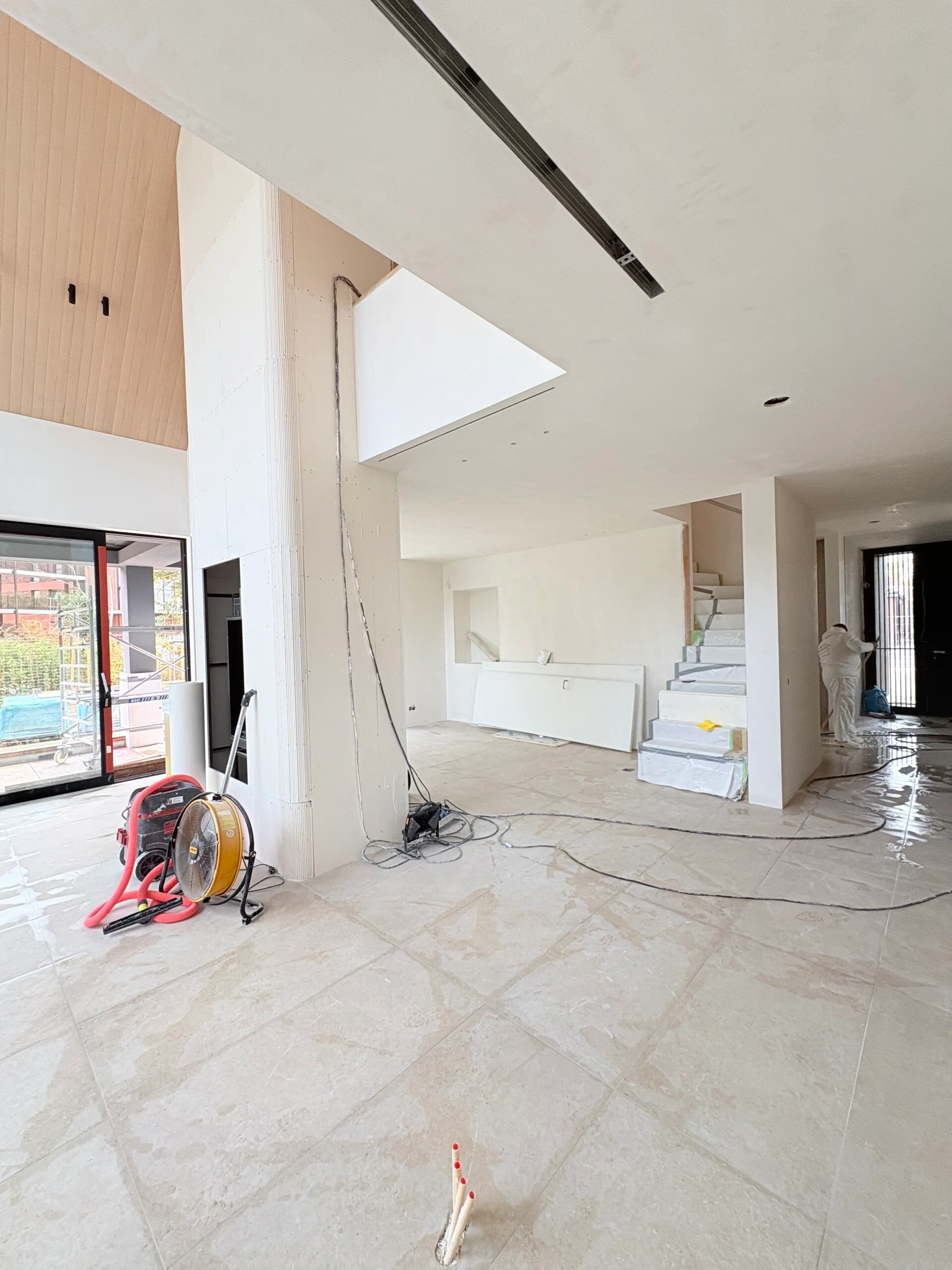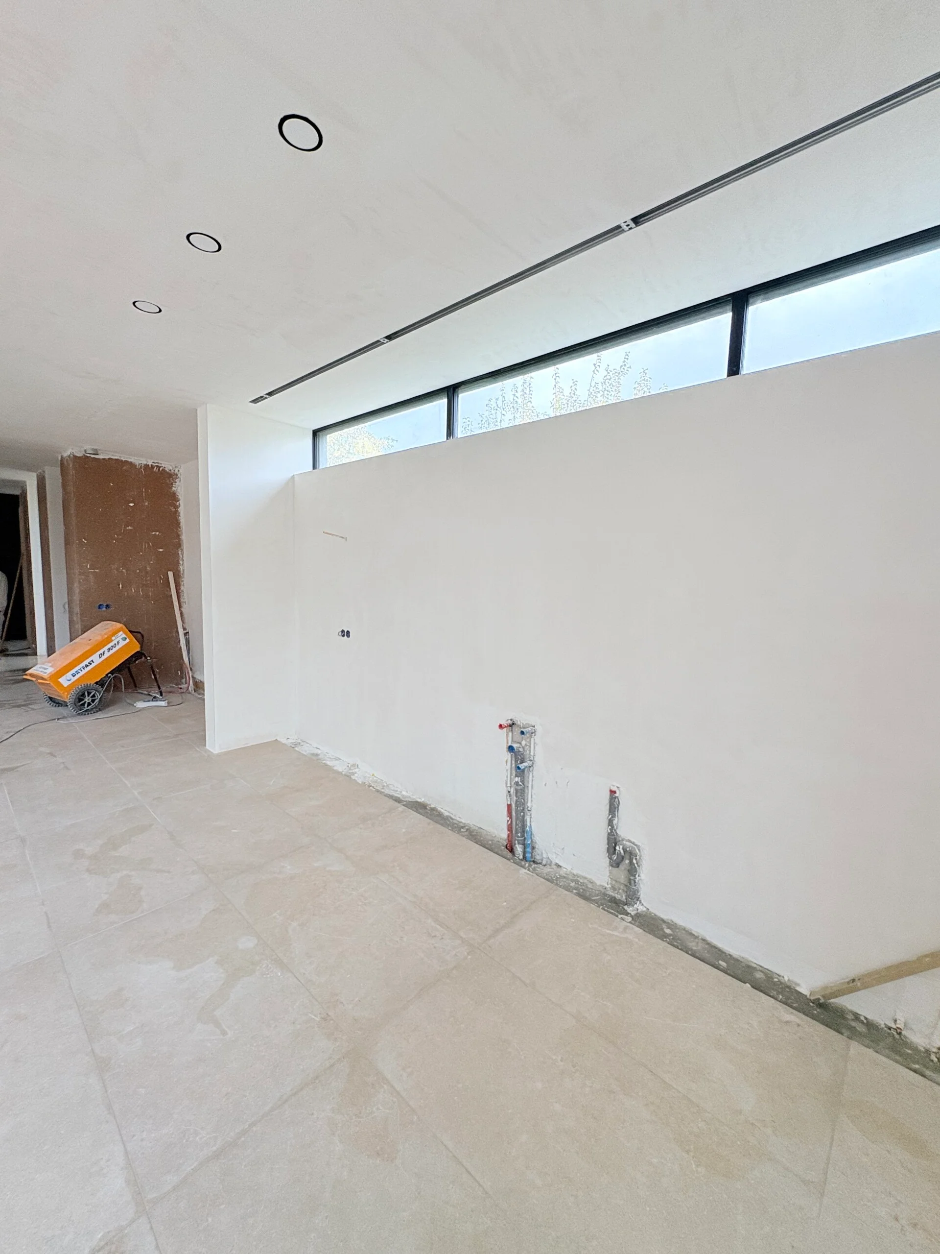 Elke wand, hoek en overgang is strak, egaal en technisch perfect afgewerkt — precies wat een exclusieve villa verdient.
